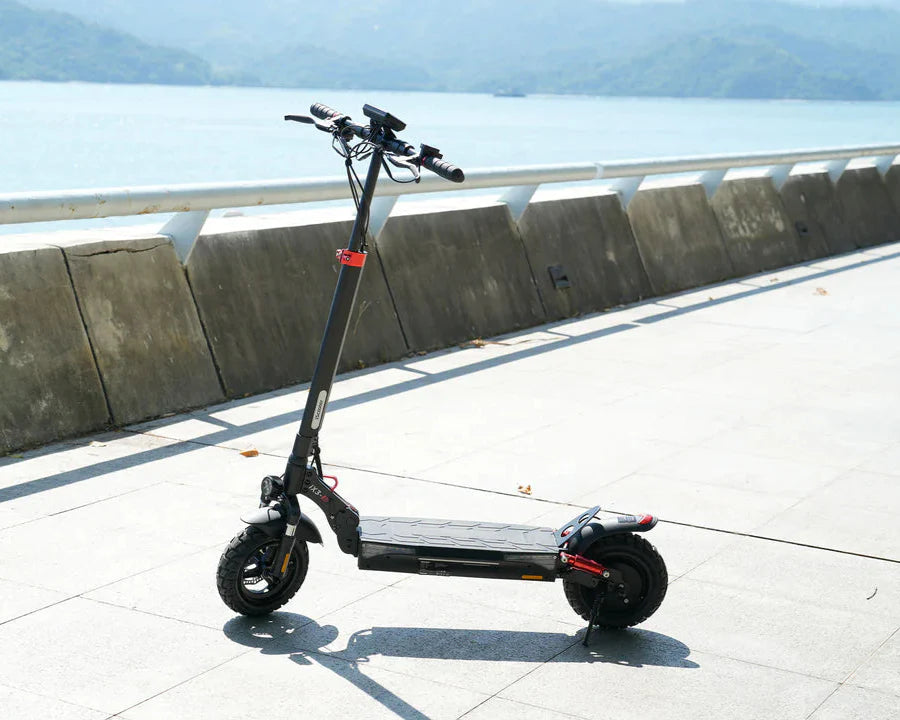 La trottinette iX3 800W incarne parfaitement l’appel de l’aventure urbaine et tout-terrain grâce à sa puissance de 800W, son autonomie allant jusqu’à 40 km, et ses pneus tout-terrain de 10 pouces à structure alvéolée. Elle monte des pentes jusqu’à 25°, atteint 40 km/h en vitesse de pointe et assure un excellent confort de conduite grâce à sa double suspension avant et arrière, un atout rare à ce niveau de prix. Ces performances en font un modèle polyvalent, aussi efficace pour les trajets quotidiens que pour les escapades hors des sentiers battus.