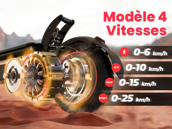 | Modes de conduite | (Avant le déblocage: 6km/h, 10km/h, 15km/h, 25km/h Après le déblocage: 10km/h, 20km/h, 30km/h, 40km/h) |